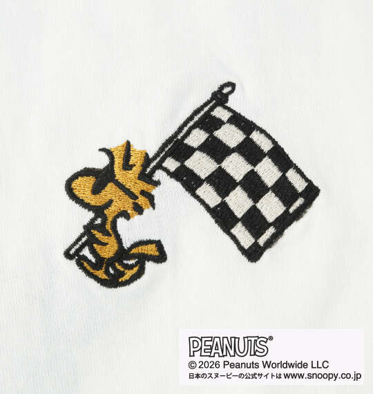 風を切って走るバイカースタイルのスヌーピーを背面に大胆にレイアウト。