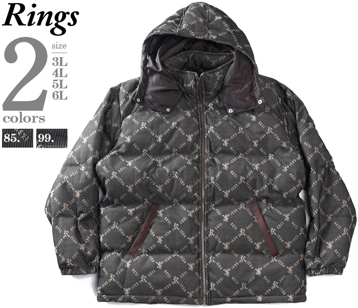 大きいサイズのメンズ専門店ビッグエムワン【fd1029】大きいサイズ メンズ RINGS リングス モノグラム柄 フード脱着 中綿 ブルゾン 秋冬新作 135640通販サイト