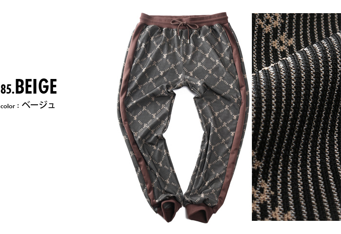 カタログコード 135641 商品名 大きいサイズ メンズ RINGS リングス モノグラム柄 ジョガー パンツ 秋冬新作 135641 M-CODE n-619 素材 ポリエステル97%、ポリウレタン3% カラー展開 【ベージュ】【ブラック】 サイズ展開 【3L】【4L】【5L】【6L】 サイズ サイズ ウエスト ヒップ 渡幅 股下 股上 3L 90 126 37 76 33 4L 100 136 40 77 34 5L 110 146 43 78 35 6L 120 156 46 79 36 単位はcmご注意 ※商品によって若干のサイズの誤差がございます。また、お客様がご使用の環境(コンピュータ画面)によって、商品の色味が若干異なる場合がございます。予めご了承ください。