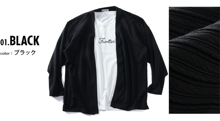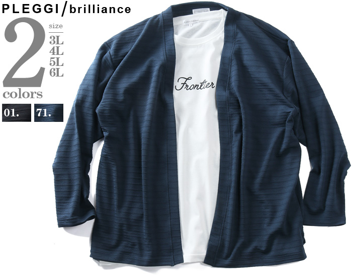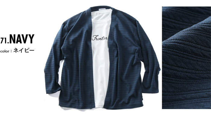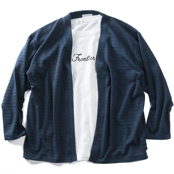 カタログコード 66-13280-2 商品名 大きいサイズ メンズ PLEGGI プレッジ ジャガードボーダー トッパー カーディガン + 半袖 Tシャツ アンサンブル 春夏新作 66-13280-2 M-CODE n-644 素材 アウター = ポリエステル95%、ポリウレタン5%