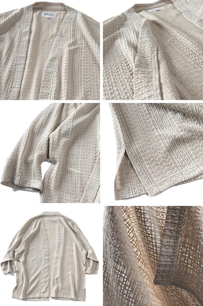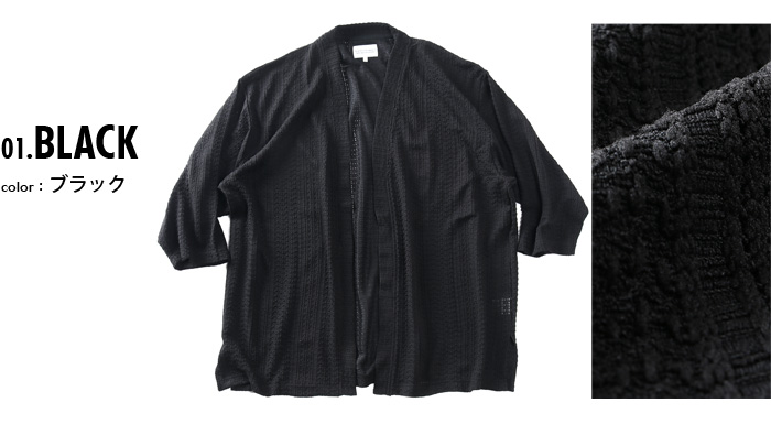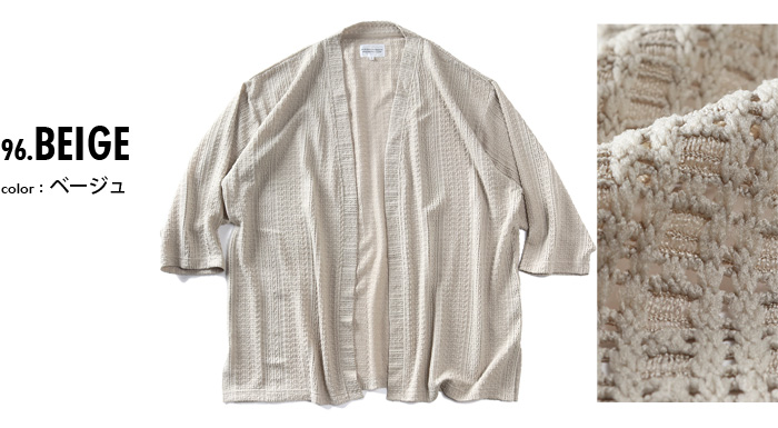 カタログコード 66-20059-2 商品名 大きいサイズ メンズ PLEGGI プレッジ 透かし編み 7分袖 トッパー カーディガン 春夏新作 66-20059-2 M-CODE n-644 素材 ポリエステル97%、ポリウレタン3% カラー展開 【ブラック】【ベージュ】 サイズ展開 【3L】【4L】【5L】【6L】 サイズ サイズ 肩幅 袖丈 胸囲 着丈 3L 60 42 138 78 4L 62 43 144 80 5L 64 44 150 81 6L 66 44 156 82 単位はcmご注意 ※商品によって若干のサイズの誤差がございます。また、お客様がご使用の環境(コンピュータ画面)によって、商品の色味が若干異なる場合がございます。予めご了承ください。