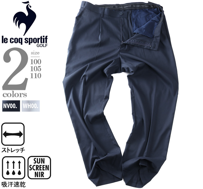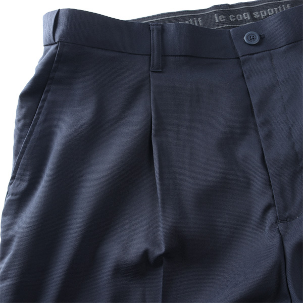カタログコード lg6slpb1m 商品名 大きいサイズ メンズ LE COQ SPORTIF GOLF ルコックスポルティフ アジャスター付 ワンタック ゴルフ パンツ ストレッチ 吸汗速乾 UVカット 春夏新作 lg6slpb1m M-CODE n-853 素材 ポリエステル97%、ポリウレタン3% カラー展開 【ネイビー】【ホワイト】 サイズ展開 【100】【105】【110】 商品説明 ゆとりある履き心地とゴルフに便利な機能性を両立させたワンタックスラックス■腰周りにゆとりを持たせ、快適な着用感を追求したワンタックテーパードシルエット■伸縮性に優れたドビー組織の素材は、無地ながら表情豊かな織目とさらっとした肌触りが特徴■ウエスト両脇に最大5cmまで伸びるアジャスター機能付き■小物をかけられるベルトループのDカンや、ラウンド中に便利な右脇のファスナー付きポケットを搭載■ウエスト裏にはすべり止め付きジャガードゴムを採用■シルエット:ワンタックテーパードシルエット、フルレングス仕上げ■素材:ストレッチ性の高いドビー組織の素材 サイズ サイズ ウエスト ヒップ 渡幅 股下 股上 100 100.5 128 41.7 90 31 105 105.5 133 43.2 90 32 110 110.5 138 44.7 90 33 単位はcmご注意 ※商品によって若干のサイズの誤差がございます。また、お客様がご使用の環境(コンピュータ画面)によって、商品の色味が若干異なる場合がございます。予めご了承ください。