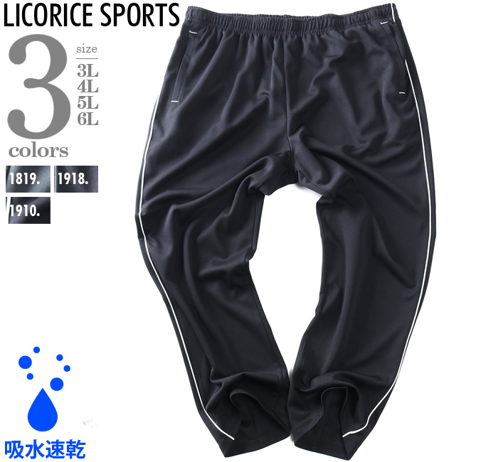 カタログコード lr0426azb 商品名 大きいサイズ メンズ LICORICE SPORTS リコリススポーツ サイドライン ジャージ パンツ 吸水速乾 秋冬新作 lr0426azb M-CODE n-405 素材 ポリエステル100% カラー展開 【チャコール】【ブラック】 サイズ展開 【3L】【4L】【5L】【6L】 商品説明 吸水速乾加工で汗をかいてもすぐ乾きます。 サイズ サイズ ウエスト ヒップ 渡幅 股下 股上 3L 88~124 124 37.0 73 34 4L 94~130 130 38.5 73 35 5L 100~138 138 40.5 73 36 6L 106~146 146 42.5 73 37 単位はcmご注意 ※商品によって若干のサイズの誤差がございます。また、お客様がご使用の環境(コンピュータ画面)によって、商品の色味が若干異なる場合がございます。予めご了承ください。